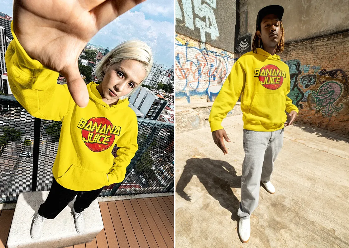 Born from asphalt, glue, and caffeine – Banana Juice was our tongue-in-cheek middle finger to the skate legends we grew up with. Santa Cruz was the myth, Banana Juice the answer. Three friends, one label – 3Monkeys. No business plan, just drive. We were kids of the 80s and 90s: Walkman on blast, baggy pants, scratched decks, basketball under the arm, and streetlights as curfews. We blended streetwear with urban funk, retro flavor, and a twist of fashion attitude – somewhere between Venice Beach, cracked schoolyards, and a concrete underpass in Munich. In Bananas We Trust was never a joke – it was our manifesto. A small yellow wink at conformity, an ironic religion for those who know that style has nothing to do with money. Only with attitude. And a banana.